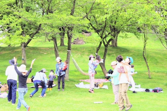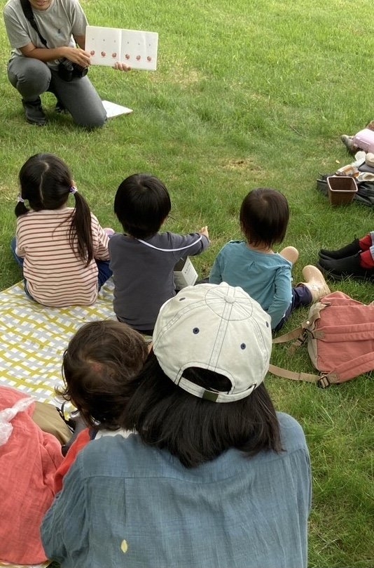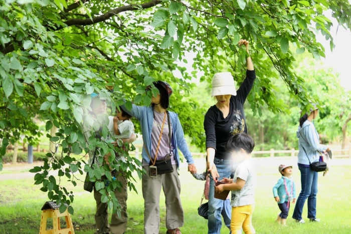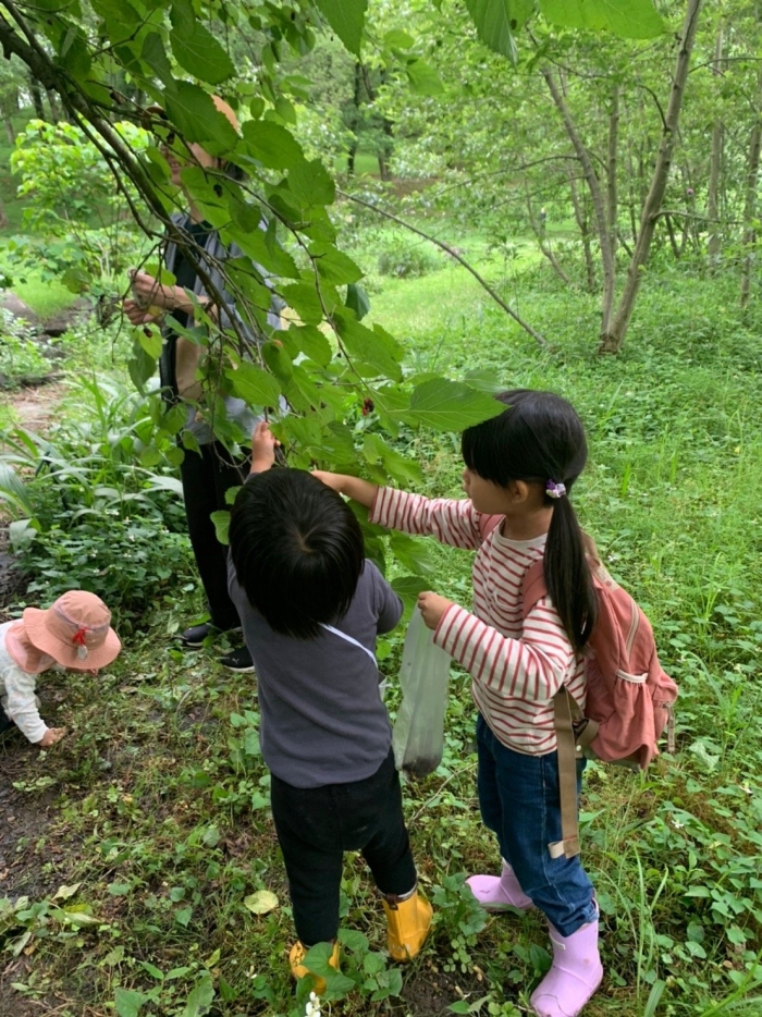 どどめジャムの歌をみんなで歌いながら歩きます。「どどめ」とは桑の実の別名だそうです。初めての歌ですが、ウキウキするリズムでみんなもにこにこです。