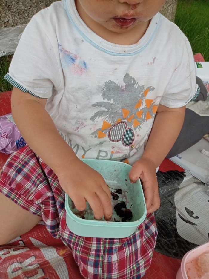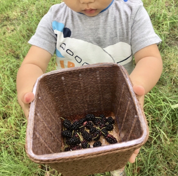手、口の周り、服にも色がついたね。桑の実とりを満喫したね。