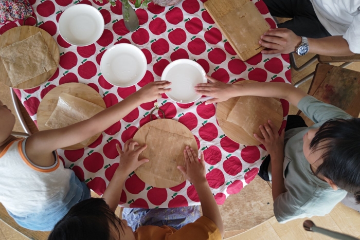 2023年06月18日(日) 森の園舎 ばぁばらDAY『ダンさんのベトナムの会』 今月のばぁばらDAY ダンさんをお招きして、 ベトナム料理ワークショップを ひらきました。 本場ベトナムのライスペーパー。 みんなでまきまきして、 カリッと揚げます。 香草の味がなんとも爽やか。 美味しいえびせんや タピオカドリンクもあり、 ちょっぴり旅行気分でした。 7月のばぁばらDAYは 『消しゴムハンコで遊ぼうの会』です