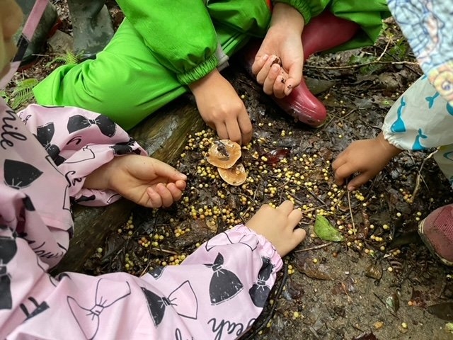 大きなケガはしないように見守りながら、いろいろなことを森の中で体験してほしいなぁ、と思っています。