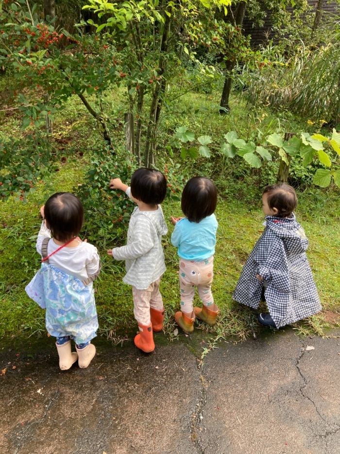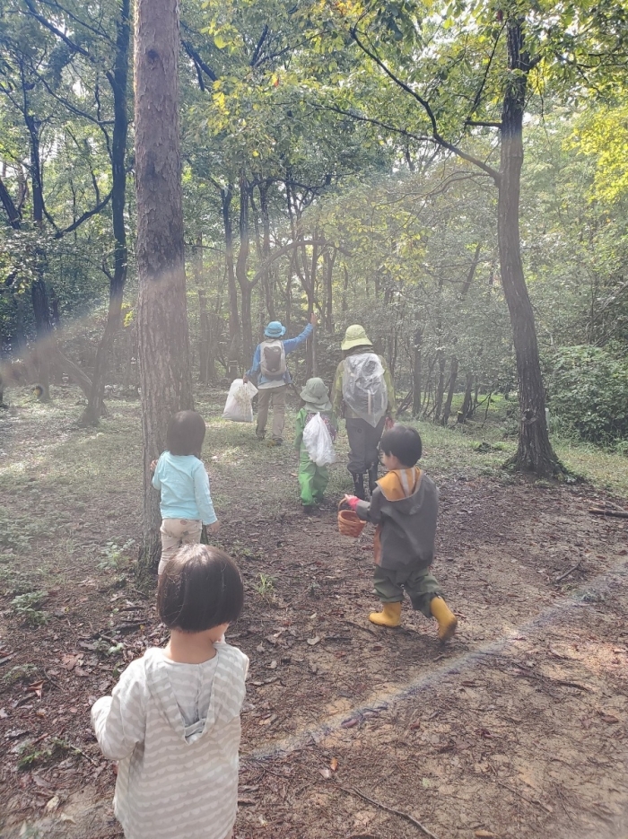 はらはらと葉っぱが落ちていくのを見たり、キノコやムカゴを見つけたりしました。