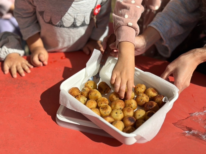 まずは、お月さまにちなんだ、まんまるのおやつを食べて。