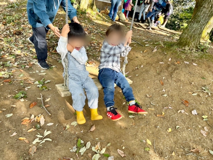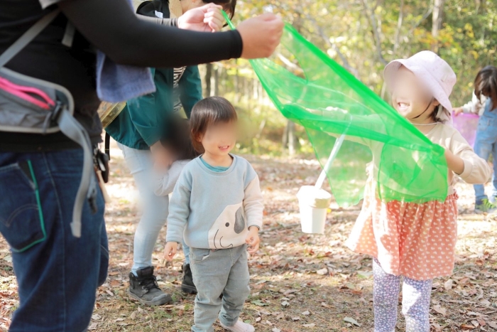 途中、木が横に倒れていたり、整備された枝が積まれているいつもと違う様子に「あ!ここにもある!」と、みんなの話し声が賑やかです。