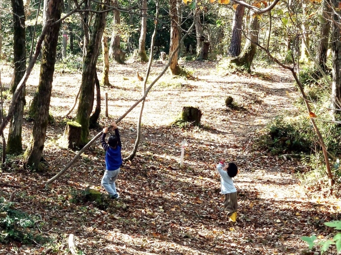 友達と一緒に駆け回りながら、楽しいことをみつけていたね。枝がいろんなものに へ〜んしん!
