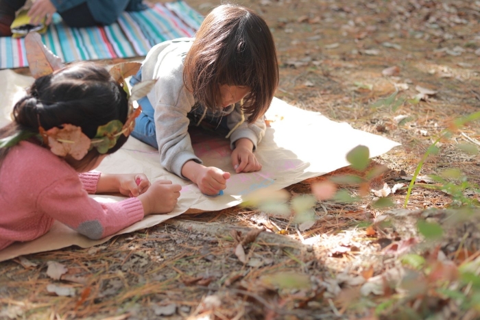 のびのびお絵描きを楽しむ画伯こびとさんも。