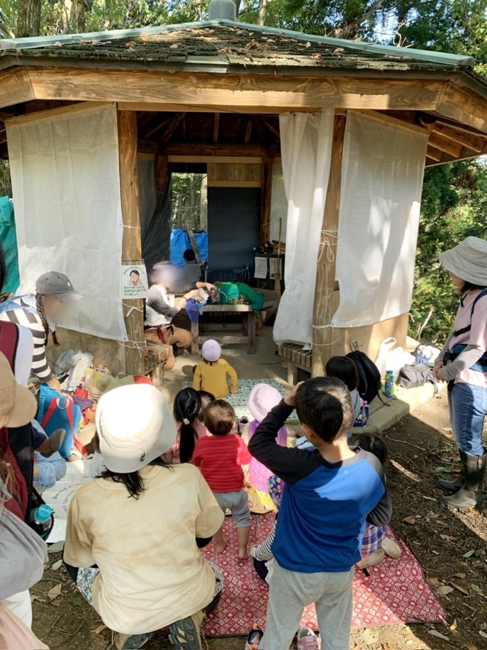 お昼ごはんを食べてから、博物館前に戻り、絵本やお話をみんなで楽しみました。