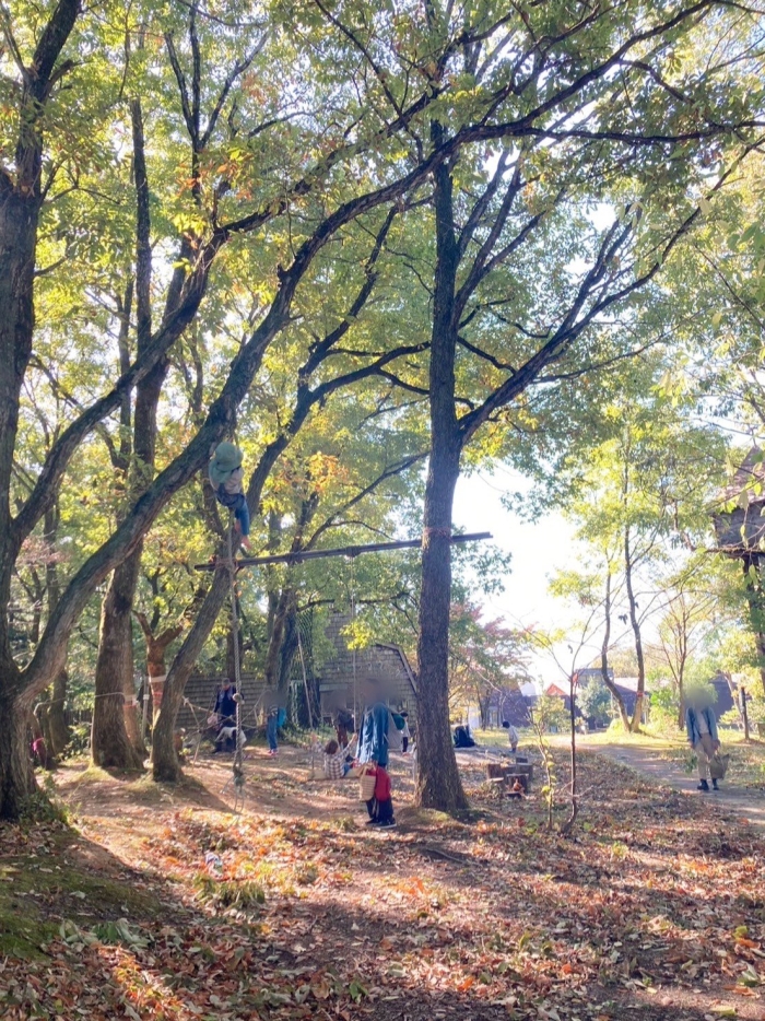 日向ぼっこ広場では、木漏れ日が射し、みんなのゆったり楽しむ姿が物語のようでした。