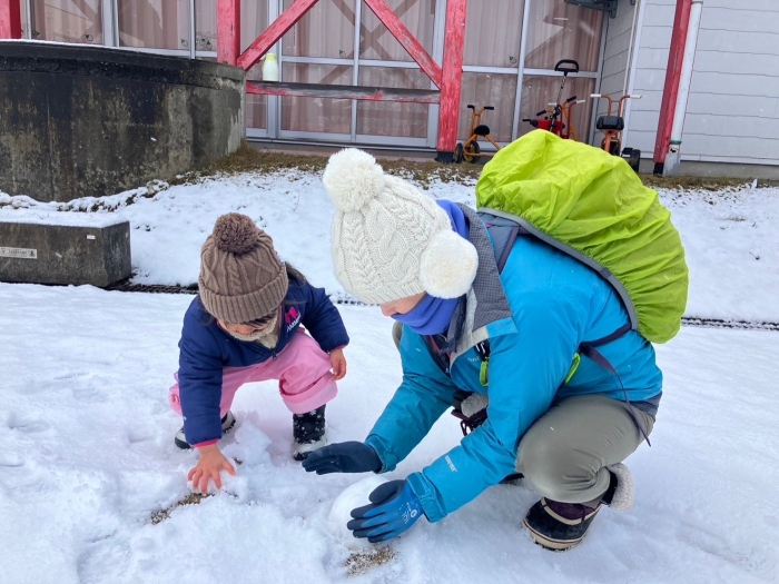 積もってきた雪を楽しみながら帰りました。