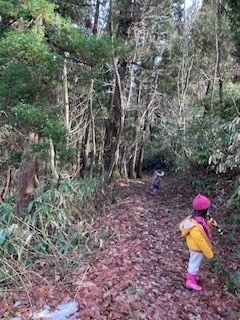 雪の日は、囲炉裏のそばで雪遊びになるのだろうけれど、天気もいいので森まで散歩