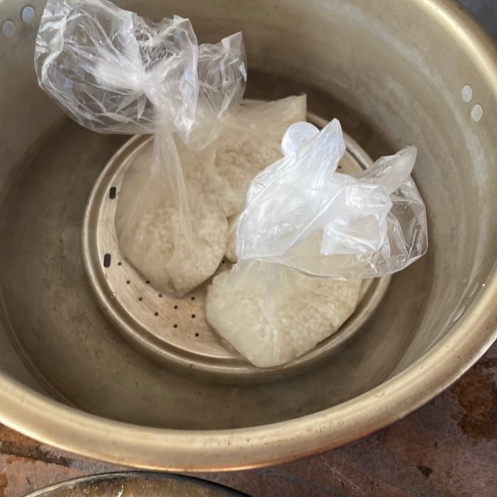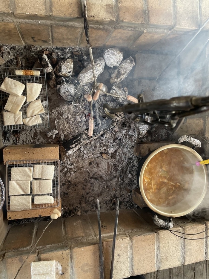 いざという時の前の平常時に、災害時の備蓄しているご飯を子供と試食してみよう。ということで、今日の昼食は、囲炉裏の火を使い、いつもの味噌汁に加えて、それぞれ災害飯を持参してみることにしました。