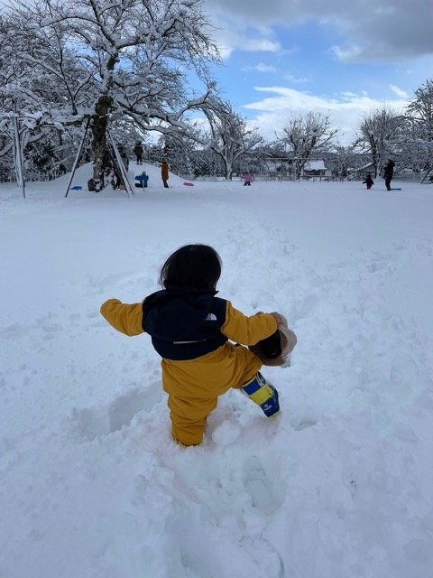 2024年01月25日(木) 雪遊びとポンポン作り 大雪の予報でしたが、青空も時々見ることができて、絶好の雪遊び日和となりました。 降りたてのふかふかの雪に倒れ飛んだり、滑ったり。 小さいこびとさんもよいしょよいしょと、みんなの元に向かいます。 ひとしきり遊んだらみんなで温かいお味噌汁とお弁当。 午後からはポンポン作りをしましたよ。 最後は絵本を読みました。 並んで座るこびとさん達が少しづつ絵本の方へ、みんなでにじり寄っていく姿がとっても可愛らしく、可笑しかったです 笑 Nちゃん母さん