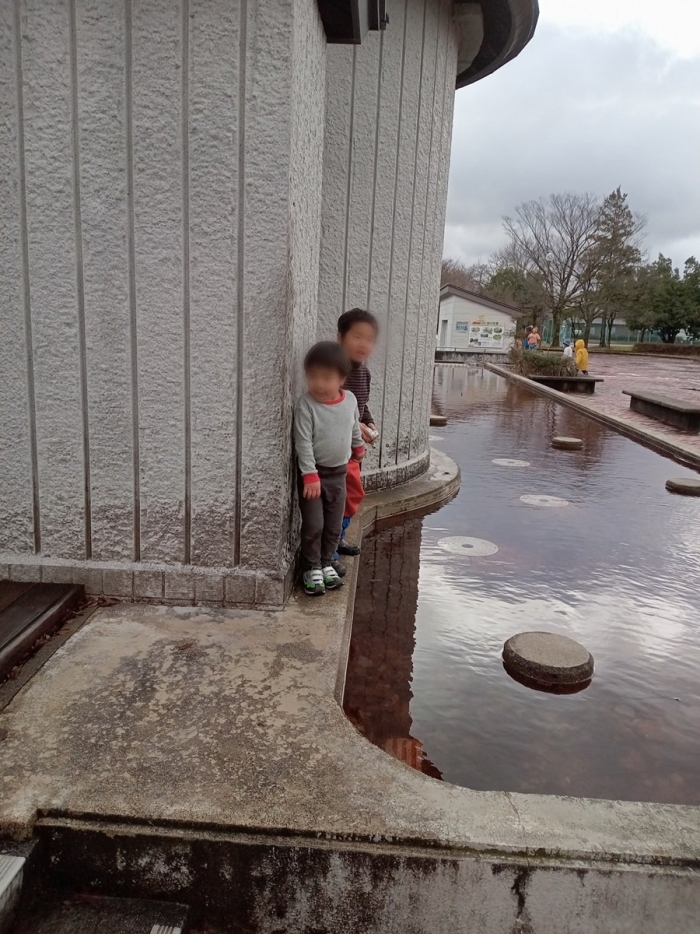 その後は囲炉裏近くの池で水遊び。