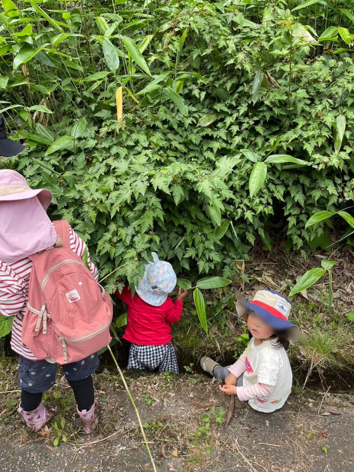 水辺の方へ行くとまた生き物がたくさん!何がいるのかな?と覗き込みます。