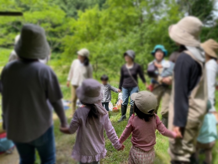 大人も頑張りました。手慣れた様子のかあさんや、深いところで足が抜けずに苦労していた長靴のかあさん。それを遠巻きにじーっと見ているこびとさんたちも。