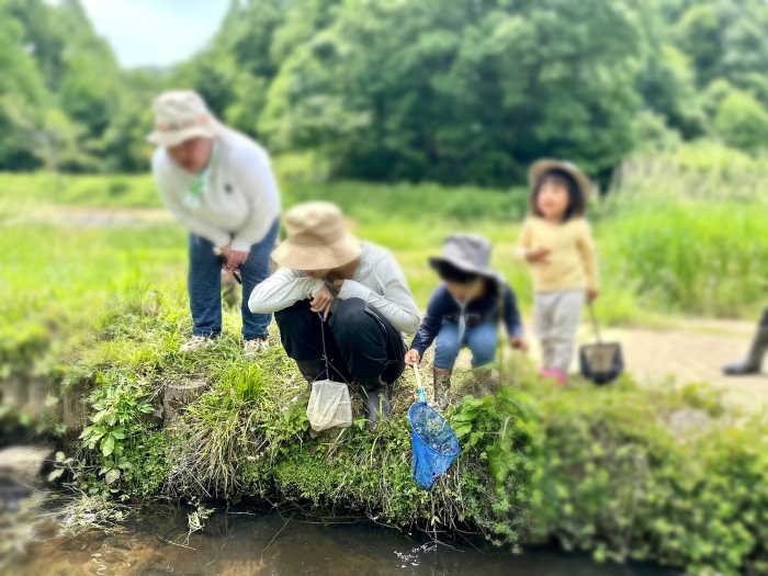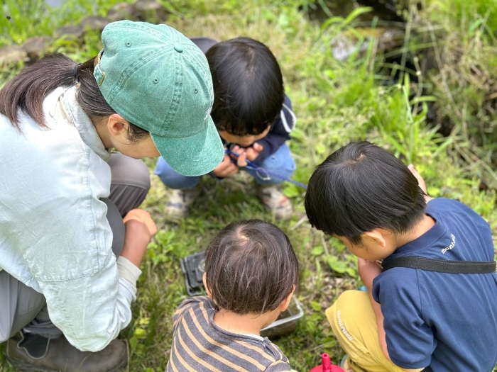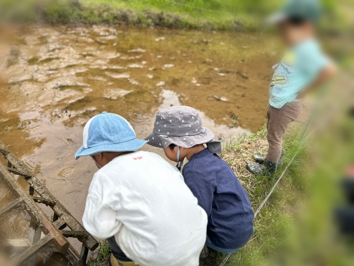 おたまじゃくしに夢中な男の子たち。