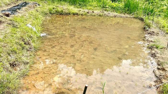 水が並々と入って、キラキラ苗が揺れます。