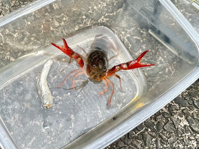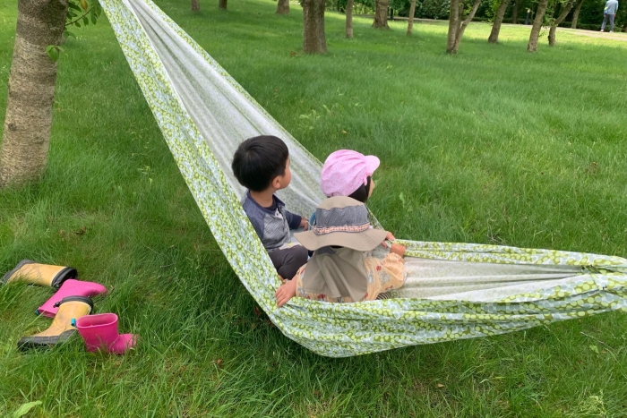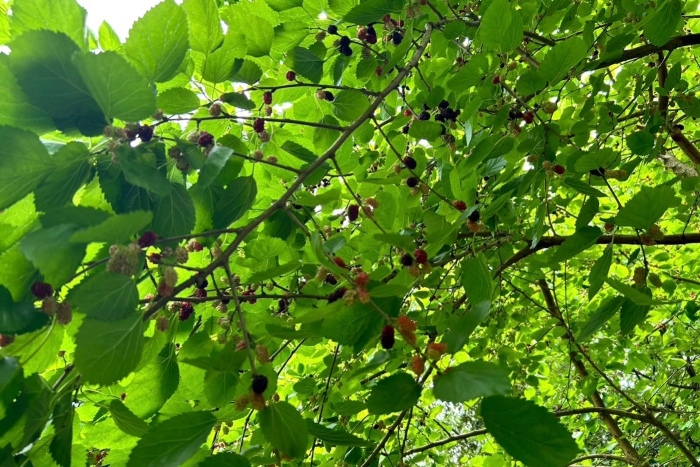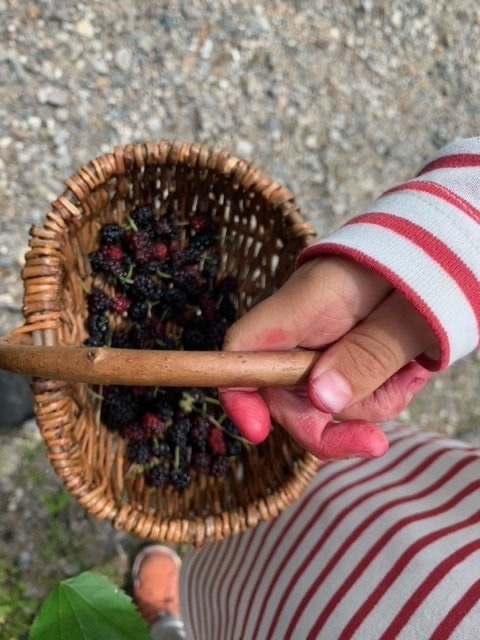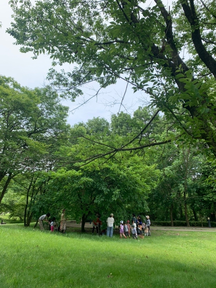 2024年06月06日(木) 桑の実摘み 今日はいつものフィールドを飛び出して、桑の実とりの日。 桑の実にちなんだ歌をみんなで歌い。桑の実とりに出発。 お散歩しながら、取って食べて…ワイワイみんなで楽しいひとときを過ごしました。 お口もおてても真っ赤にして、たくさん、たくさん取りました。 ザリガニ釣りにも挑戦。 今日も楽しかったね。また森で遊ぼうね。 Yちゃん母さん