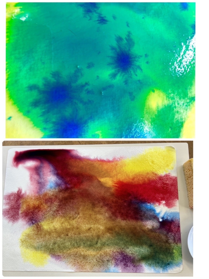 次に、年齢別のグループに分かれてにじみ絵を楽しみました。
