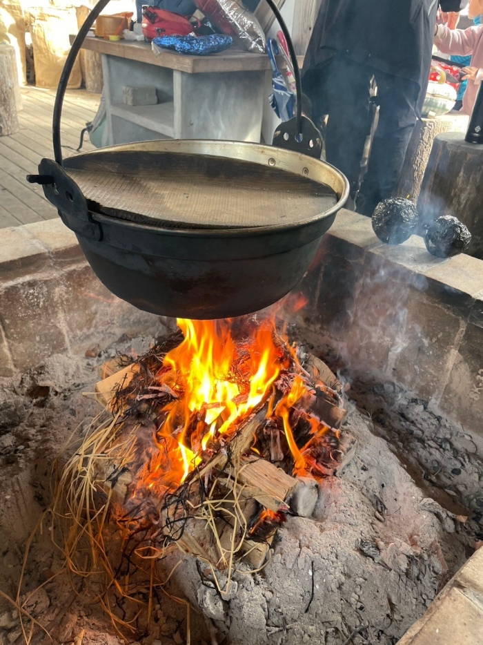 アウトドア玄人の母さんが、ぱぱっと火起こししてくれました。さすがです。