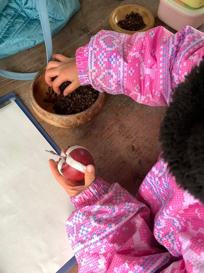 ポマンダーづくりも楽しみました。西洋では冬の風物詩だそうです。フルーツポマンダーはフルーツとクローブ、シナモンなどのスパイスによってつくられる香りの魔除け。クリスマスのオーナメントとしても楽しむそうですよ。