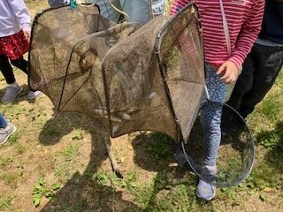 池に罠を仕掛けて、どんな生き物が見つかるかな?
