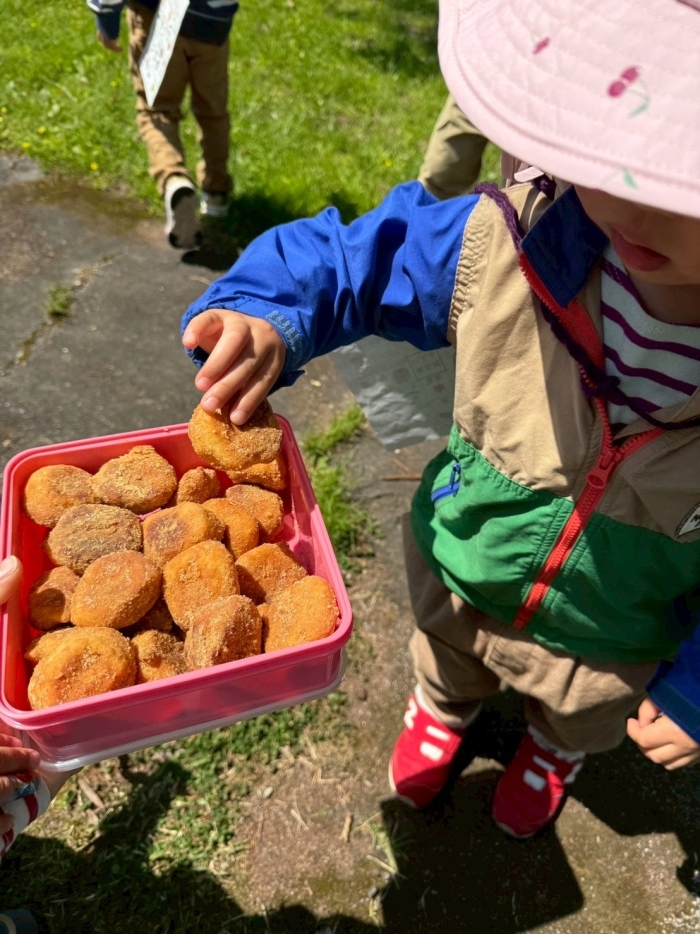 2025年05月01日(木) お散歩ビンゴ 今日はねいの里さんからカードをもらって、ゆっくりお散歩ビンゴをしました。 これは何かなー?良い香りはするかなー? おやつはきなこ揚げパン。美味しい! ランチは、サンドイッチポットラックです。 ねいの里さんからご褒美のカードももらいました 美しくて楽しくて幸せな一日。 みんなの記憶のどこかに、この幸せが蓄積されていくのが嬉しいです。