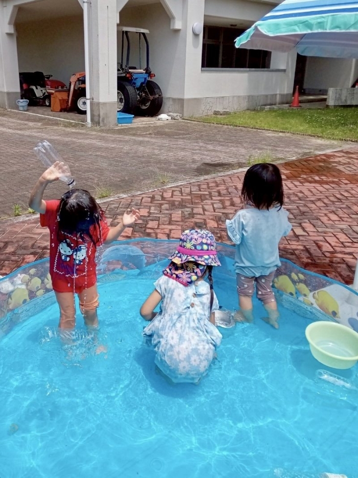 ごはんの後は、プールで水あそび!