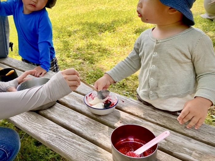 ひんやりつるりんとした寒天に、ベリーのソースがとってもおいしかったね。