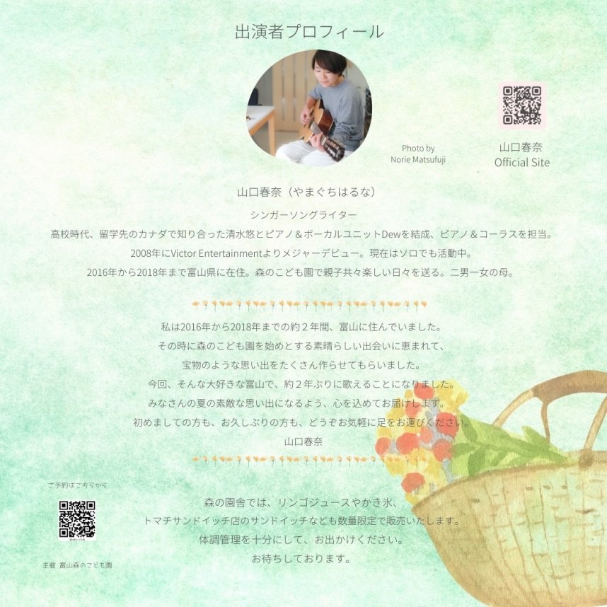 森のこども園で一緒に豊かに優しい子育てを共にしていたお母さんの山口春奈さんが2年ぶりに富山でコンサートをしてくださいます。